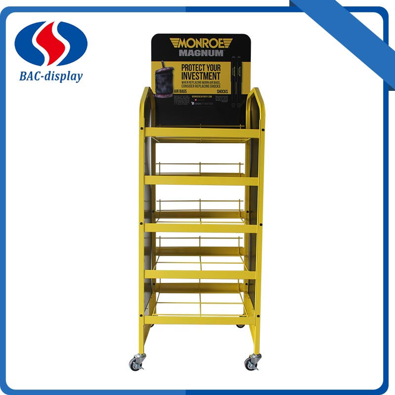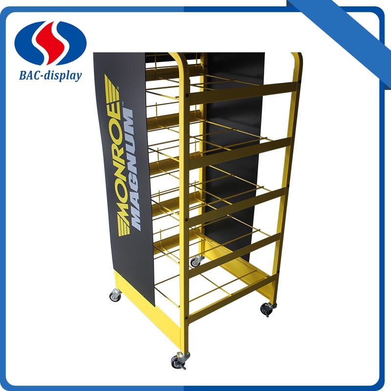 Ez az autóalkatrészek padlókijelzője, amelyet az autóalkatrészeket szállító üzletekben használnak, hogy az Ön cégének márkáit árusítsák Tartozékok autókhoz, amelyek vastag acéllemez, vastag vascső használatával nagy súlyt vesz igénybe. A Vivid reklámmintával könnyen elfogadhatnák az ügyfelek. Sokkal egyszerűbb megmutatni a saját előnyét. Az autóalkatrészek padlóján található kijelzőkeret könnyen összeszerelhető, az erős drótháló pedig tisztán tartja a réteget több hónapos használat után is. Huzal rétegek laminátumok nem könnyű felhalmozódni a por. A 4 keréknek köszönhetően a padlókijelző állvány szükség esetén könnyen áthelyezhető egy másik helyre. 2 keréken van fék, hogy ne mozduljon el magától. Könnyen összeszerelhető, mert ez a rack jól strukturált. A fő paraméter információ a következő. Vegye fel velem a kapcsolatot, ha további ötletei vannak.